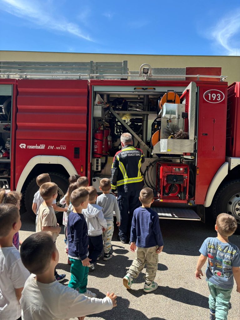 Povodom blagdana Svetog Florijana, zaštitnika vatrogasaca, u sva tri naša objekta (Imotski, Donji Vinjani i Donji Proložac) vatrogasci iz JVP Grada Imotskog došli su svojim vozilom i pokazali nam opremu i način kako se koristi.