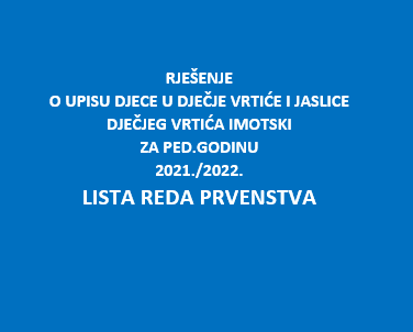 RJEŠENJE O UPISU DJECE U DJEČJE VRTIĆE I JASLICE DJEČJEG VRTIĆA IMOTSKI ZA PED.GODINU 2021./2022.